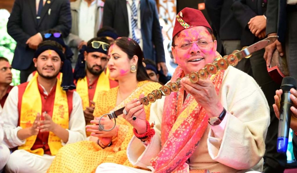 3. मुख्यमंत्री पुष्कर सिंह धामी संग थिरके लोक कलाकार, रंगों में सराबोर हुआ प्रांगण