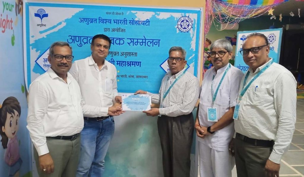 अणुव्रत विश्व भारती सोसायटी व अणुव्रत लेखक मंच ध्दारा 5 से 7 अक्टूबर 2025 तक प्रेक्षा विश्व भारती , कोबा , अहमदाबाद में आयोजित अणुव्रत लेखक मंच का साहित्यकार सम्मेलन सभी साहित्यकारों के मन व मस्तिष्क में स्वर्णिम अक्षरों में सदा के लिए अंकित ह़ो गया है जिसे भुलाये नहीं भूला जा सकता । चूंकि यह एक साहित्य सम्मेलन ही नहीं था अपितु देश भर के साहित्यकारो का एक महा कुम्भ था जहां साहित्यकारों का न केवल स्नेह मिलन हुआ बल्कि एक साहित्य मंच से प्रेम और स्नेह की गंगा के साथ ही साथ अनुशासन , निष्ठा के साथ कार्य करने व संवाद की प्रक्रिया को निरन्तर बनाये रखें जाने पर बल दिया गया ।