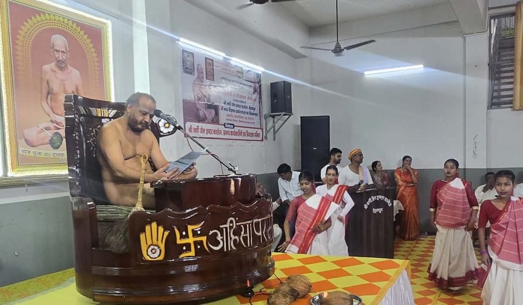 समारोह में आचार्य श्री सौरभ सागर जी महाराज ने अपने आशीर्वचन में विद्यार्थियों को जीवन में अहिंसा का मार्ग अपनाने और सात्विक भोजन करने का संदेश दिया। उन्होंने कहा कि विद्यार्थी यदि शिक्षा के साथ-साथ जीवन मूल्यों को भी आत्मसात करें तो वे समाज और राष्ट्र के लिए आदर्श नागरिक बन सकते हैं। उनके प्रेरक संदेश से उपस्थित छात्र-छात्राओं में नई ऊर्जा और सकारात्मक सोच का संचार हुआ।