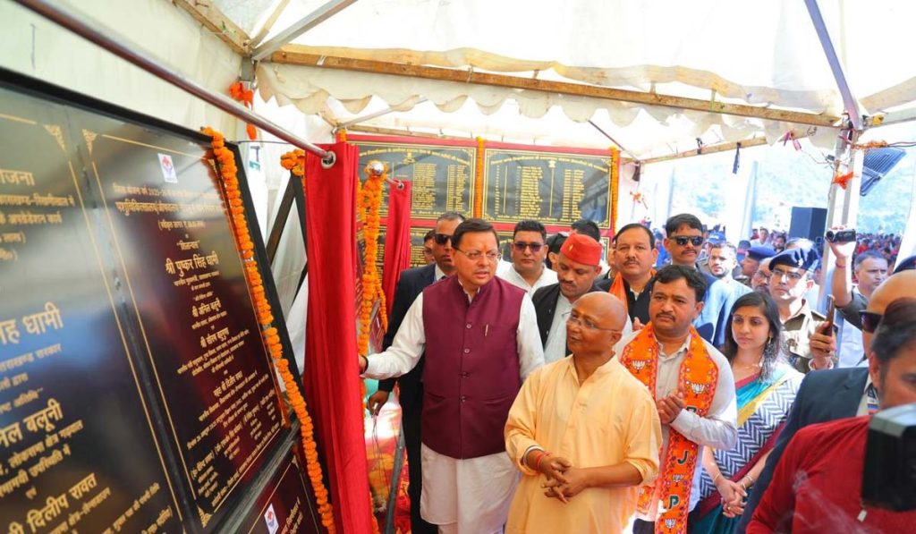 देहरादून : मुख्यमंत्री पुष्कर सिंह धामी ने राजकीय इंटर कॉलेज रिखणीखाल, पौड़ी गढ़वाल में आयोजित शहीद स्मरण समारोह में प्रतिभाग किया। इस अवसर पर मुख्यमंत्री ने कुल 102.82 करोड़ रुपये की लागत से 11 विभिन्न विकास योजनाओं का लोकार्पण एवं शिलान्यास किया। इनमें 56.58 करोड़ रुपये की लागत की 06 योजनाओं का लोकार्पण तथा 46.24 करोड़ रुपये की लागत की 05 योजनाओं का शिलान्यास शामिल है।इस दौरान मुख्यमंत्री ने राजकीय इंटर कॉलेज रिखणीखाल का नाम श्री गुणानंद के नाम पर रखने, विकासखंड रिखणीखाल में दलमोटा से बल्ली तक का मिलान कार्य करने, विकास खण्ड रिखणीखाल में प्रेक्षागृह का निर्माण करने, विकास खण्ड रिखणीखाल में लो०नि०वि० अतिथि गृह व हैलीपैड निर्माण कार्य, विकास खण्ड जयहरीखाल में न्याय पंचायत मेरूड़ा में प्राथमिक स्वास्थ्य केन्द्र की स्थापना, विकास खण्ड रिखणीखाल के मंदाल नदी से नौदानू में पम्पिंग योजना निर्माण, विकास खण्ड जयहरीखाल में पशु सेवा केन्द्र सिलवाड़, जयहरीखाल पशु चिकित्सालय का उच्चीकरण एवं पशु सेवा केन्द्र ढौंटियाल पशुधन प्रसार अधिकारी पद सहित ग्राम सत्तीचौड़ में स्थापना करने, विधान सभा लैन्सडौन के अन्तर्गत विकास खण्ड रिखणीखाल में मन्दाल नदी पर बाढ सुरक्षा कार्य, विकास खण्ड रिखणीखाल में चौलूडांडा पम्पिंग योजना निर्माण, विकास खण्ड नैनीडांडा के भौन में पम्पिंग योजना का निर्माण, विकास खण्ड नैनीडांडा के अन्तर्गत दिगोलीखाल पम्पिंग योजना का निर्माण, विकासखंड द्वारीखाल में सिमडी कंडली मोटर मार्ग के प्रथम बैंड से सेरा फरसैंगाल तक मोटर मार्ग का निर्माण, विकासखंड रिखणीखाल में कठवाडा खनसुली खनेताखाल मोटर मार्ग से ढाबखाल बुलेखा मोटर मार्ग तक मिलान कार्य, विकास खण्ड रिखणीखाल में लेकुल नाड़ मज्याड़ी मोटरमार्ग का निर्माण कार्य, रिखणीखाल कोटडीसैंण के समीप ग्राम पैयागड़ी रजवी मल्ला विटे मोटर मार्ग का निर्माण, विकासखण्ड रिखणीखाल में किल्यौखाल से सुन्द्रोली तक मोटर मार्ग का निर्माण कार्य, विकास खण्ड रिखणीखाल में नावे तल्ली में भाग दो का कार्य, देवियोखाल बाजार से मैवणी तक सम्पर्क मार्ग का चौड़ीकरण एवं सुधार कार्य, विकासखंड रिखणीखाल के अंतर्गत पाणीसैंण डबराड़ बूथानगर मोटर मार्ग का निर्माण, सामुदायिक स्वास्थ्य केन्द्र रिखणीखाल में डॉक्टरों नियुक्ति तथा विकासखंड रिखणीखाल के अंतर्गत अमर शहीदों के नाम पर स्थानीय मोटर मार्गों के नाम करने की घोषणाएं की।