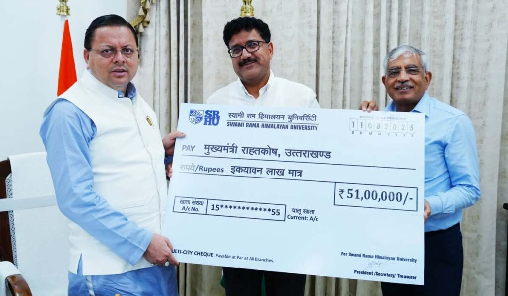 स्वामी राम हिमालयन यूनिवर्सिटी के प्रतिनिधियों ने भी आश्वस्त किया कि वे आगे भी राज्य सरकार के साथ मिलकर आपदा राहत, स्वास्थ्य सेवाओं और शिक्षा के क्षेत्र में योगदान करते रहेंगे। उन्होंने कहा कि विश्वविद्यालय की ओर से यह सहायता केवल आर्थिक सहयोग तक सीमित नहीं रहेगी, बल्कि वे अपने संसाधनों और विशेषज्ञता का उपयोग प्रभावित क्षेत्रों में स्वास्थ्य सेवाएं, चिकित्सा शिविर और पुनर्वास कार्यों के लिए भी करेंगे।