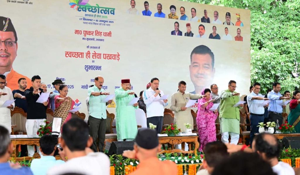 देहरादून : मुख्यमंत्री श्री पुष्कर सिंह धामी ने बुधवार को स्वच्छ उत्सव–2025 कार्यक्रम का शुभारंभ किया। इस अवसर पर उन्होंने प्रधानमंत्री श्री नरेंद्र मोदी को जन्मदिवस की हार्दिक शुभकामनाएं दीं और उनके स्वस्थ एवं दीर्घायु जीवन की कामना की। साथ ही प्रदेशवासियों को भगवान विश्वकर्मा जयंती की बधाई भी दी। मुख्यमंत्री ने स्वच्छता अभियान के तहत स्वयं झाड़ू लगाकर स्वच्छता का संदेश दिया और प्रदेशवासियों से इस मुहिम से जुड़ने का आह्वान किया। उन्होंने कहा कि 17 सितंबर से 2 अक्टूबर तक पूरे प्रदेश में सेवा और स्वच्छता से जुड़े विभिन्न कार्यक्रम आयोजित किए जाएंगे।