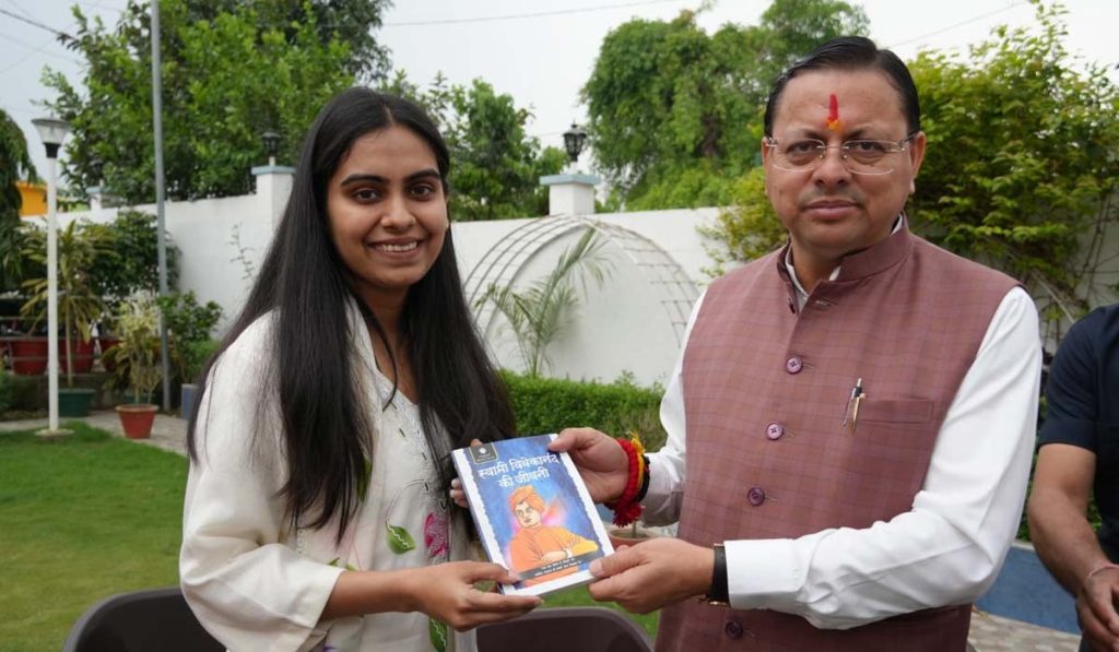 निजी आवास नगला तराई में सीएम धामी ने मेधावी बेटियों से किया संवाद