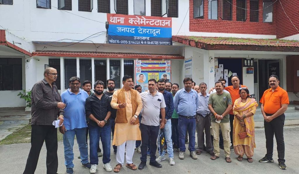 देहरादून : डिस्ट्रीब्यूटर संगठन के पदाधिकारी और व्यापारी क्लेमेंट टाउन थाने पहुंचे और जमकर हंगामा किया। जानकारी के अनुसार, सुभाष नगर स्थित एक दुकानदार ने व्यापारियों से माल लेने के बावजूद एक साल से भुगतान नहीं किया था। इससे आक्रोशित व्यापारी उसके खिलाफ थाने में तहरीर देने पहुंचे। व्यापारियों का आरोप था कि पुलिस का रवैया ढीलमुल रहा, जिसके बाद संगठन के पदाधिकारियों ने वरिष्ठ समाजसेवी और नेता रविंद्र सिंह आनंद को मौके पर बुलाया।