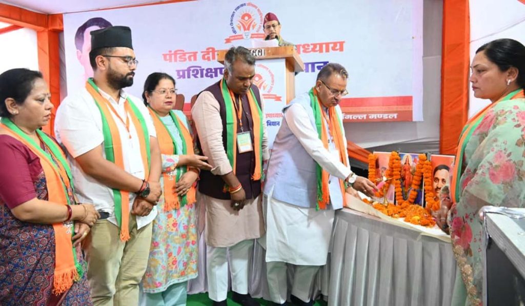 देहरादून : कैबिनेट मंत्री गणेश जोशी ने आज कुठाल गेट स्थित स्वामी राम तीर्थ आश्रम में पंडित दीनदयाल उपाध्याय प्रशिक्षण महाअभियान 2026 के अंतर्गत मसूरी विधानसभा के श्रीदेव सुमन नगर मंडल एवं शहीद दुर्गा मल्ल मंडल के प्रशिक्षण वर्ग के सत्र का दीप प्रज्वलित कर विधिवत शुभारंभ किया।इस दौरान कैबिनेट मंत्री गणेश जोशी ने केंद्र सरकार की जनकल्याणकारी योजनाओं की प्रदर्शनी का अवलोकन भी किया। इस प्रशिक्षण वर्ग में संगठन की कार्यप्रणाली, जनसंपर्क, और सरकार की योजनाओं के प्रभावी क्रियान्वयन पर विस्तृत चर्चा की गई।