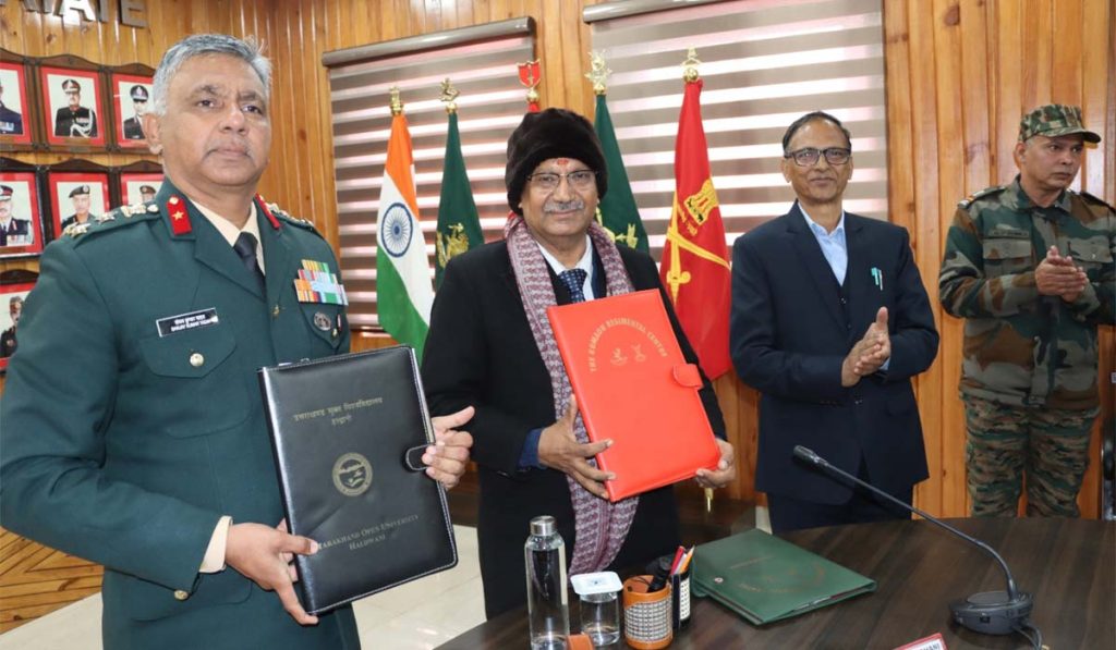 हल्द्वानी/ देहरादून : उत्तराखंड मुक्त विश्वविद्यालय एवं कुमाऊं रेजिमेंट के बीच कौशल आधारित स्नातक एवं परास्नातक पाठ्यक्रमों को लेकर एमओयू साइन किया गया है। यह समझौता ज्ञापन सैन्य अधिकारियों, जवानों एव ंअग्निवीरों सहित सैनिक आश्रितों को उच्च शिक्षा तथा कौशल विकास के लिये नये अवसर उपलब्ध करायेगा। इसके साथ ही कुमाऊं रेजीमेंट सेंटर में विश्वविद्यालय के डिस्टेंस लर्निंग सेंटर की औपचारिक शुरूआत भी कर दी गई है।