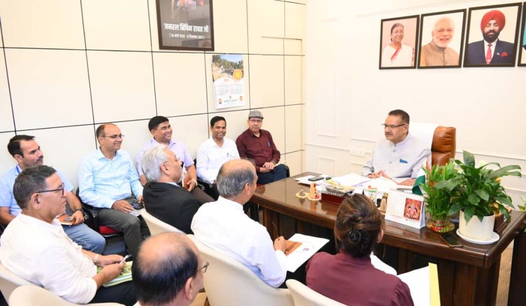 देहरादून : सैनिक कल्याण मंत्री गणेश जोशी ने आज कैंप कार्यालय में सैनिक कल्याण विभाग के अधिकारियों के साथ उत्तराखंड के पंचम धाम सैन्य धाम के निर्माण कार्यों की समीक्षा बैठक की।