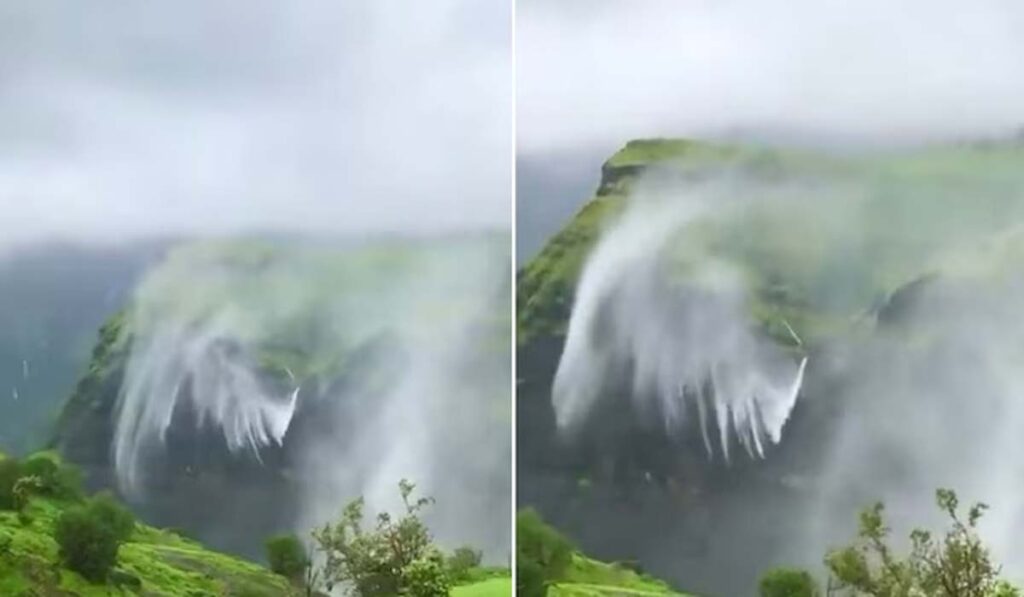 प्रकृति का चमत्कार: वेस्टर्न घाट में दिखा उल्टा बहता झरना
