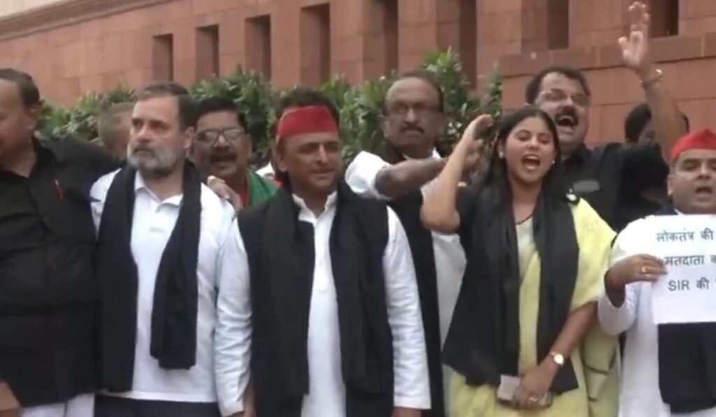 संसद के अंदर के साथ-साथ बाहर भी विपक्ष का विरोध प्रदर्शन जारी रहा। ‘इंडियन नेशनल डेवलपमेंटल इन्क्लूसिव अलायंस’ (इंडिया) के घटक दलों के कई सांसदों ने संसद भवन परिसर में बिहार में चल रहे मतदाता सूची के विशेष गहन पुनरीक्षण (एसआईआर) और अन्य मुद्दों को लेकर विरोध जताया। प्रदर्शन कर रहे सांसदों ने काली कमीजें और बांहों पर काली पट्टियां पहनकर अपनी नाराजगी प्रकट की।