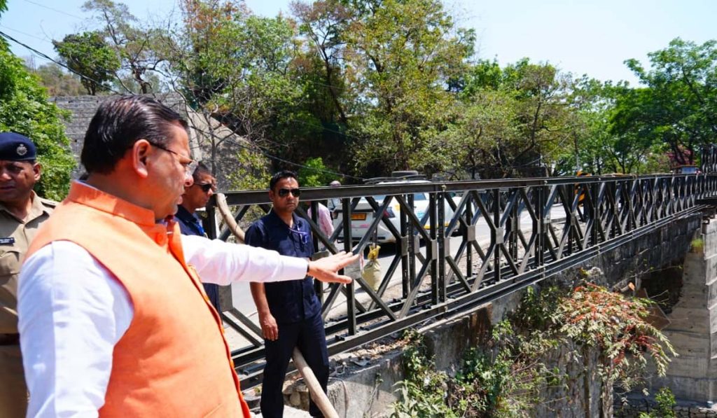 पुष्कर सिंह धामी ने मसूरी रोड पुल निर्माण कार्य का लिया जायजा
