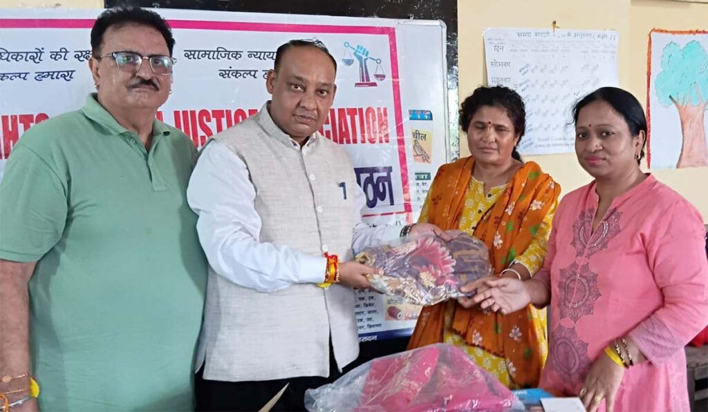 देहरादून: मानवाधिकार एवं सामाजिक न्याय संगठन द्वारा वार्ड 35 चोरखाला स्थित राजकीय प्राथमिक विद्यालय में रक्षाबंधन का एक विशेष कार्यक्रम आयोजित किया गया, जिसमें स्कूली छात्राओं ने संगठन के राष्ट्रीय अध्यक्ष सचिन जैन को रक्षा सूत्र बांधा। कार्यक्रम के दौरान उपहार स्वरूप बालिकाओं को लेखन सामग्री, विद्यालय की शिक्षिकाओं को साड़ियां और भोजन माताओं को भी साड़ियां भेंट की गईं। कार्यक्रम की खास बात यह रही कि सभी बालिकाएं अपने घर से स्वयं राखी बनाकर लाई थीं और उन्हीं राखियों को उन्होंने सचिन जैन को बांधा।