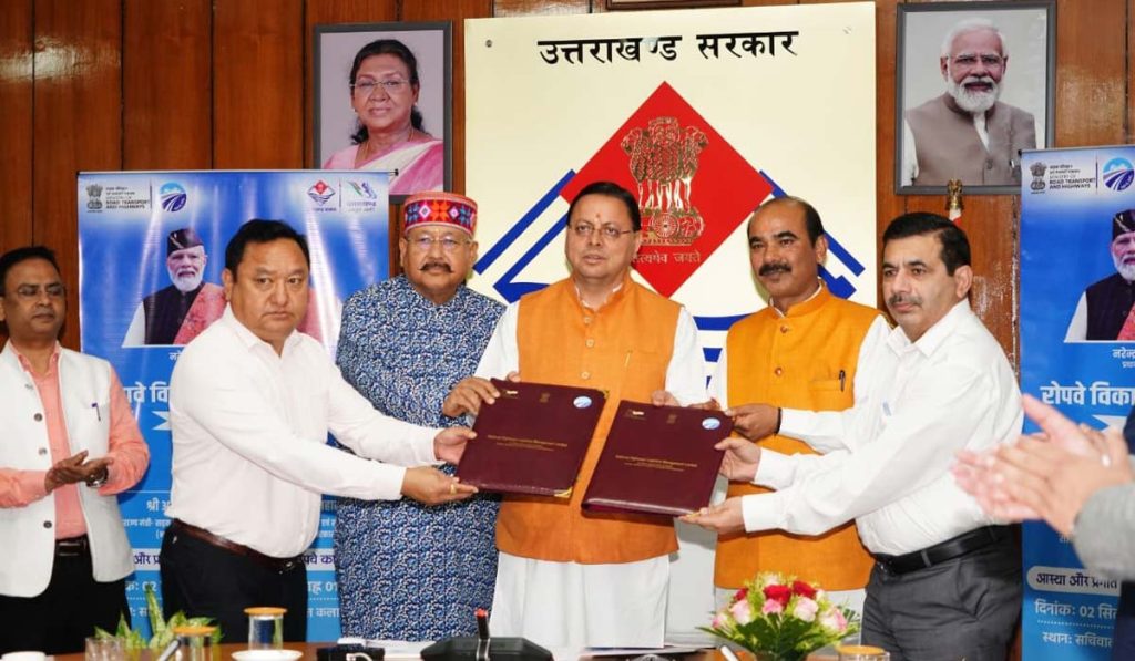 देहरादून : मुख्यमंत्री पुष्कर सिंह धामी की उपस्थिति में पर्वतमाला परियोजना के अन्तर्गत केदारनाथ और हेमकुंड साहिब में रोपवे के विकास के लिए राज्य सरकार और नेशनल हाईवे लॉजिस्टिक्स मैनेजमेंट लिमिटेड (एनएचएलएमएल) के बीच समझौता हुआ। इस समझौते के तहत एनएचएलएमएल की 51 प्रतिशत और राज्य सरकार की 49 प्रतिशत हिस्सेदारी तय की गई है। राजस्व साझेदारी के अनुसार 90 प्रतिशत धनराशि उत्तराखंड में पर्यटन, परिवहन और गतिशीलता के क्षेत्र में खर्च होगी। इस अवसर पर केंद्रीय सड़क परिवहन एवं राजमार्ग राज्य मंत्री अजय टम्टा और पर्यटन मंत्री सतपाल महाराज भी मौजूद रहे।