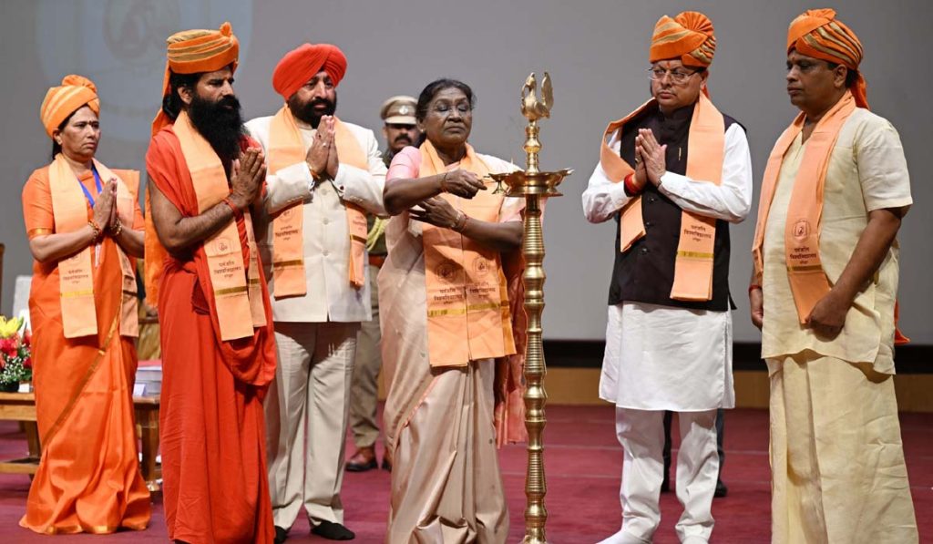 देहरादून : राष्ट्रपति श्रीमती द्रौपदी मुर्मु ने पतंजलि विश्वविद्यालय हरिद्वार के द्वितीय दीक्षांत समारोह में स्वर्ण पदक प्राप्त विद्यार्थियों को सम्मानित किया। रविवार को आयोजित इस कार्यक्रम में कुल 1454 विद्यार्थियों को उपाधि प्रदान की गई। 62 शोधार्थियों को विद्या वारिधि और 3 शोधार्थियों को विद्या वाचस्पति की उपाधि प्रदान की गई, जबकि 615 विद्यार्थियों को परास्नातक और 774 विद्यार्थियों को स्नातक की उपाधि प्रदान की गई। इस अवसर पर राज्यपाल लेफ्टिनेंट जनरल गुरमीत सिंह (से नि.) ने राष्ट्रपति को राष्ट्रपति भवन की विविध वनस्पतियों पर आधारित दो पुस्तकें ‘फ्लोरा ऑफ राष्ट्रपति भवन’ एवं ‘मेडिसिनल प्लांट्स ऑफ राष्ट्रपति भवन’ की प्रतिलिपियाँ भी भेंट कीं।
