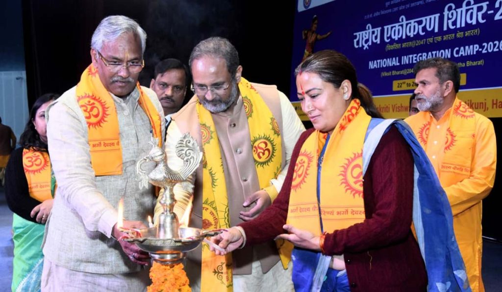 हरिद्वार : देव संस्कृति विश्वविद्यालय में राष्ट्रीय सेवा योजना (एनएसएस) के राष्ट्रीय एकीकरण शिविर का भव्य शुभारम्भ उत्तराखंड की कैबिनेट मंत्री रेखा आर्या ने किया। शिविर में देश के 13 राज्यों एवं 185 विश्वविद्यालयों से आए एक हजार से अधिक युवा प्रतिभाग कर रहे हैं। पारंपरिक वेशभूषा में उपस्थित युवाओं ने भारत की सांस्कृतिक विविधता और राष्ट्रीय एकता का सजीव चित्र प्रस्तुत किया।