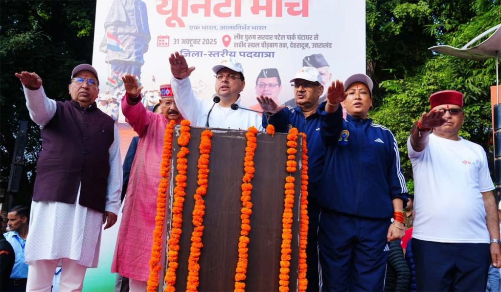 देहरादून : देश की एकता और अखंडता के शिल्पकार लौह पुरुष सरदार वल्लभभाई पटेल की 150वीं जयंती के अवसर पर शुक्रवार को देहरादून में यूनिटी मार्च का आयोजन किया गया। मुख्यमंत्री पुष्कर सिंह धामी ने महिला सशक्तिकरण एवं बाल विकास मंत्री रेखा आर्या के साथ हरी झंडी दिखाकर मार्च को रवाना किया और पदयात्रा में हिस्सा लिया।