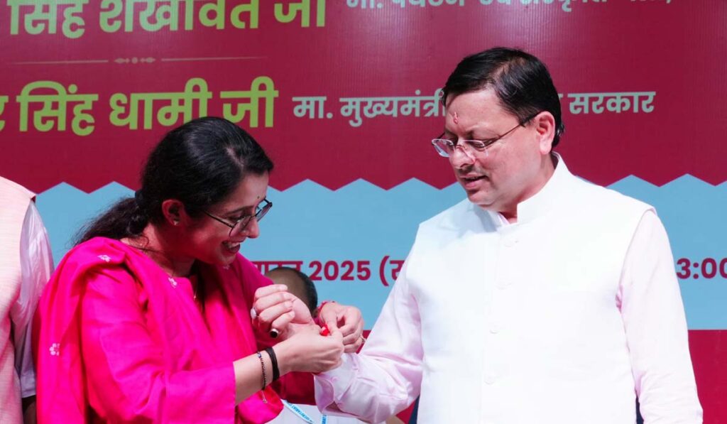 मुख्यमंत्री श्री पुष्कर सिंह धामी रविवार को केंद्रीय संस्कृति एवं पर्यटन मंत्री श्री गजेंद्र सिंह शेखावत की उपस्थिति में हरबंस कपूर मेमोरियल कम्युनिटी हॉल, गढ़ीकैंट, देहरादून में आयोजित रक्षाबंधन समारोह 2025 में सम्मिलित हुए।
